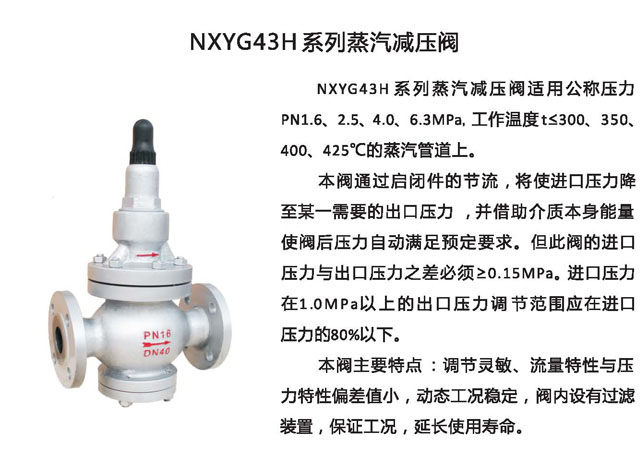 ▲ 当前位置:首页 > 产品目录 > 蒸汽减压阀> NXYG43H系列蒸汽减压阀
