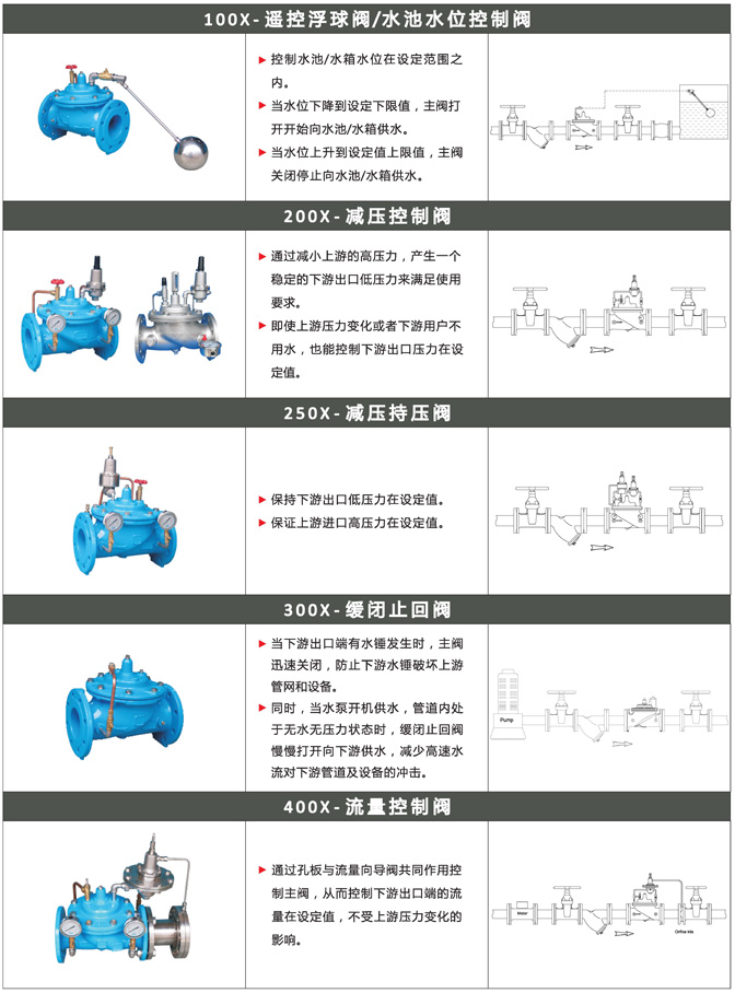 蒸汽减压阀 气体减压阀 液体减压阀 膜片式减压阀 自力式温度调节阀 自动水力控制阀 导阀及其他配件